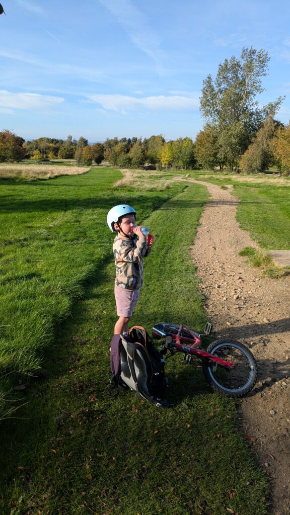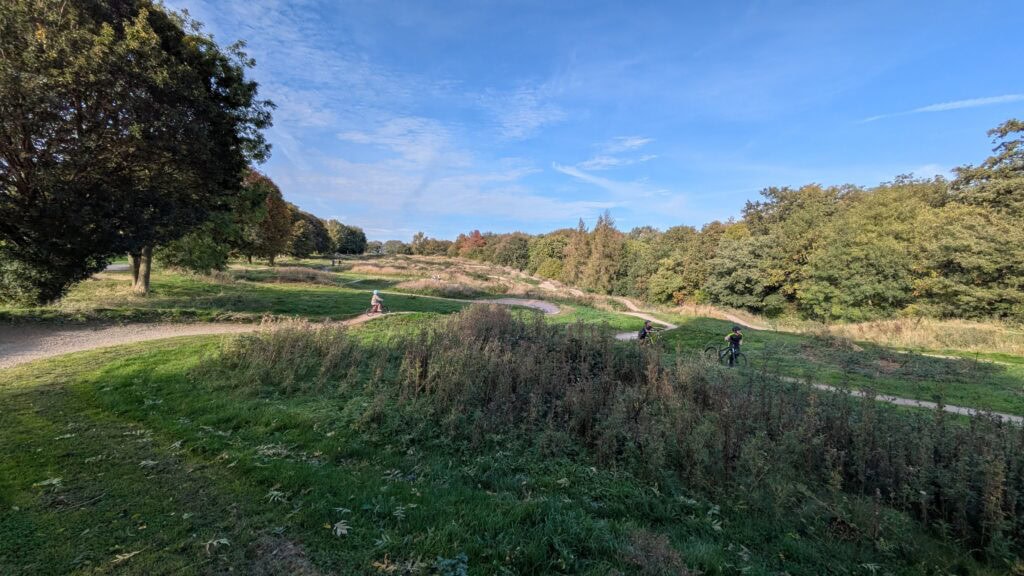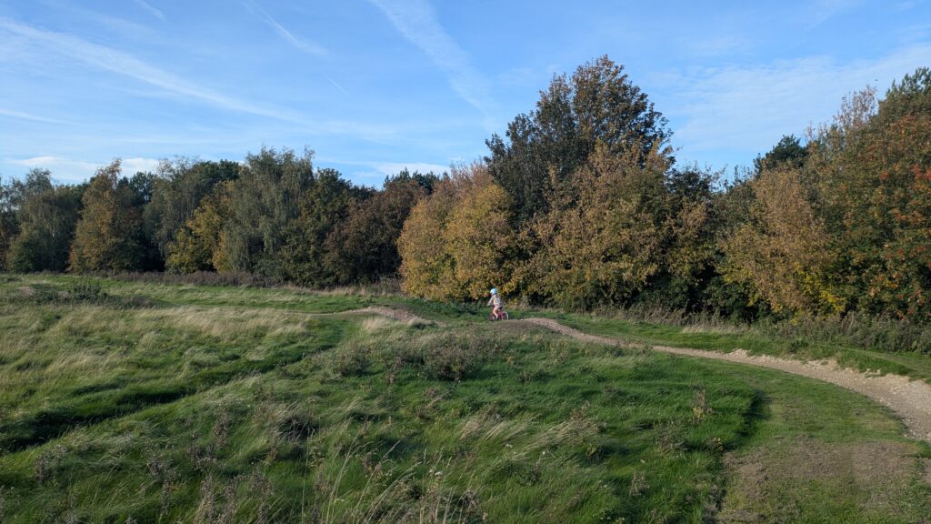 The main hub consists of a pump track, BMX track, and blue and red circuits. I believe the green trail takes you around the perimeter of Middleton Park and there are further circuits through the woods. We didn’t locate the black trails (or perhaps we did but weren’t 100% sure) but they are for experienced riders with high-quality bikes.