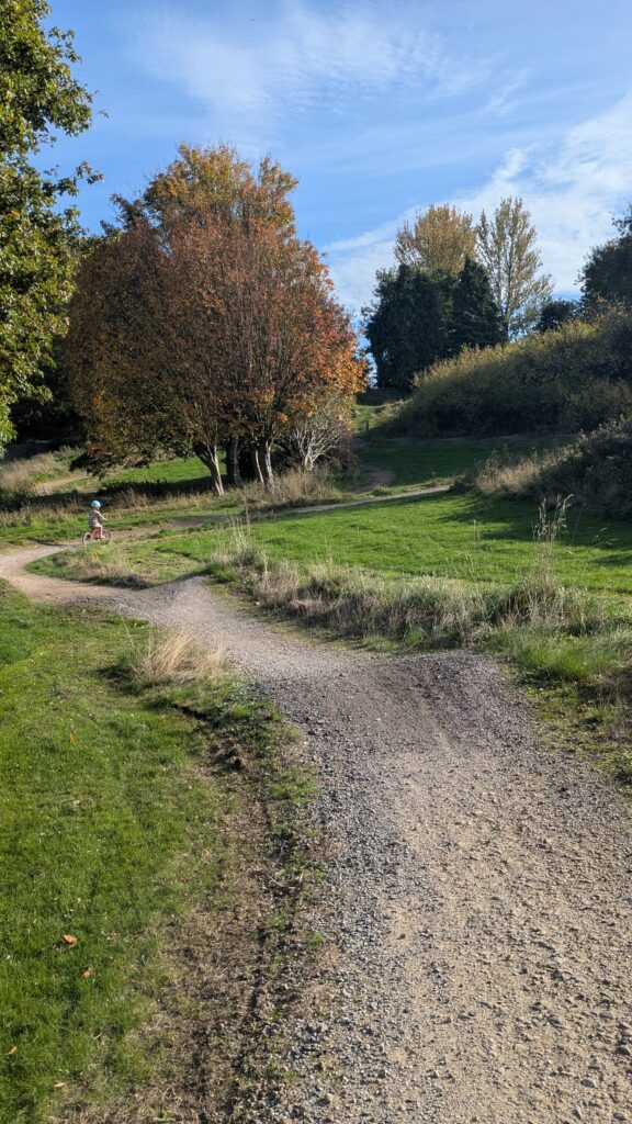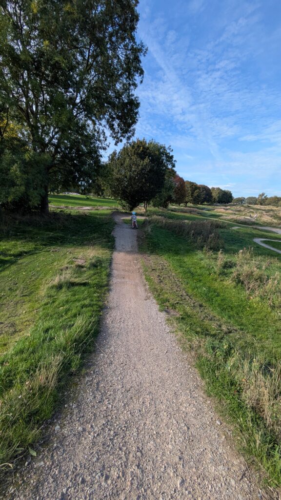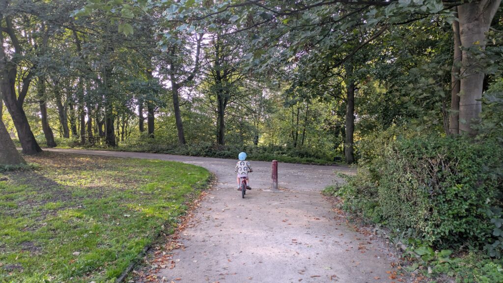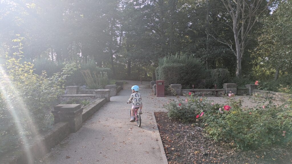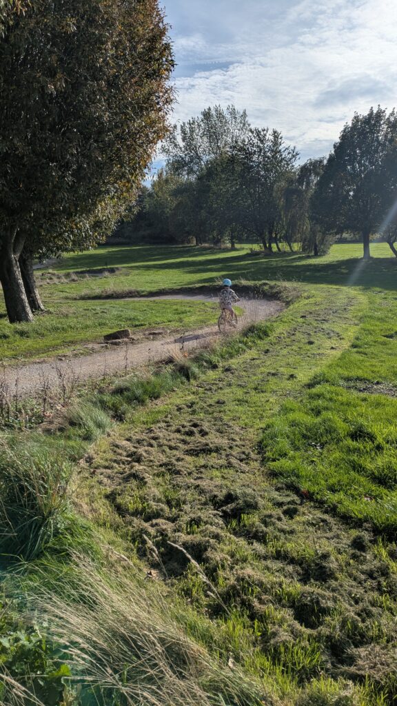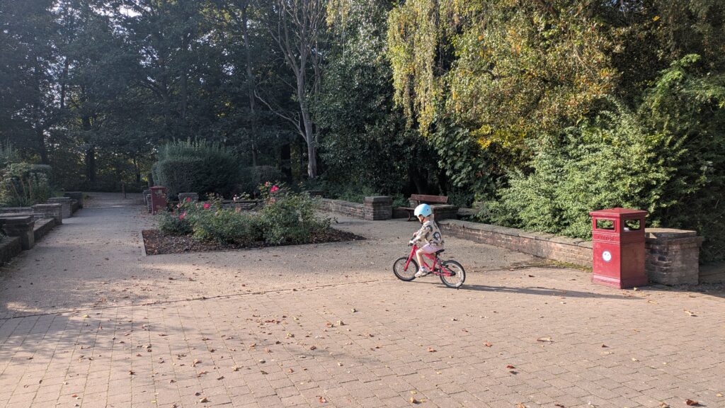 There were some inclines (the park slopes downwards) which could be difficult for some children however it’s very easy to push your bike in spells.